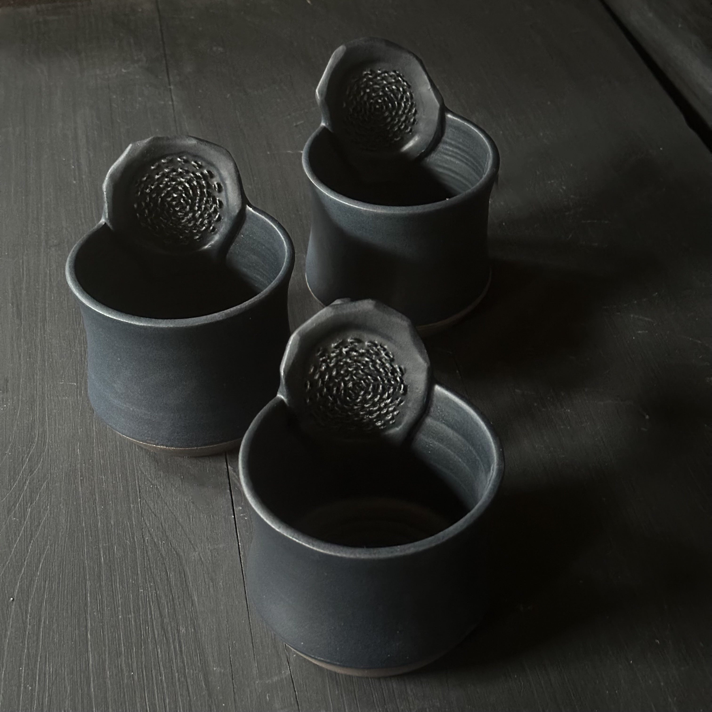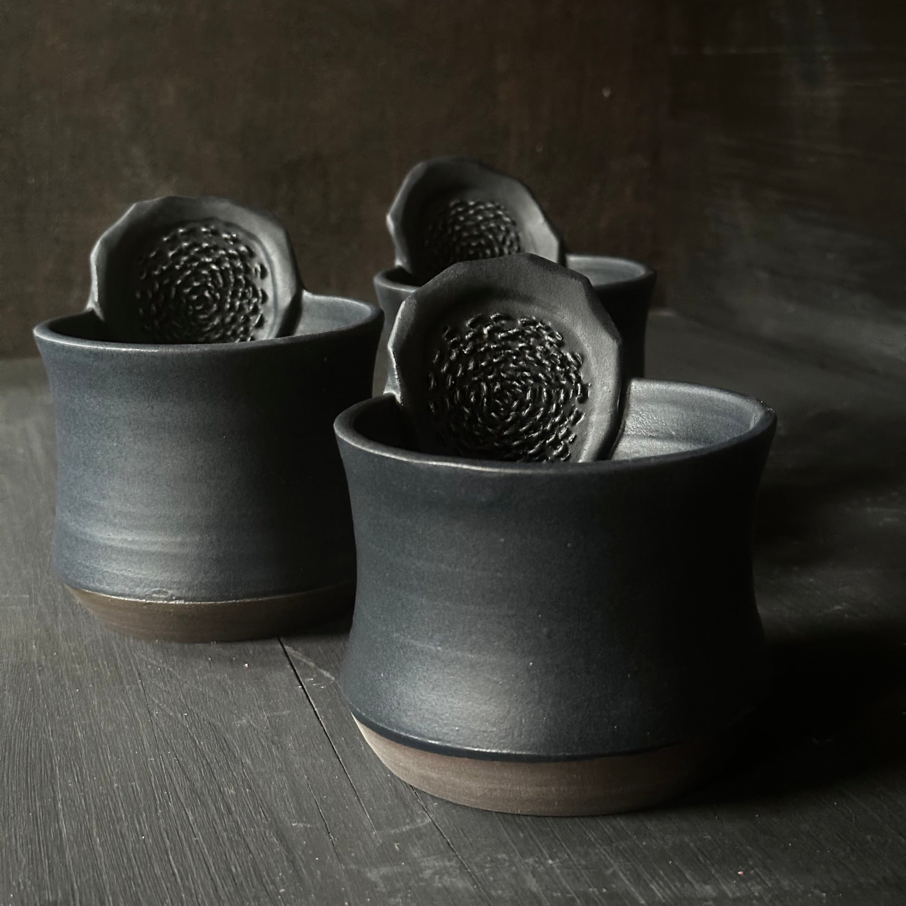Schwarzer Steinzeugton mit matter schwarzer Glasur